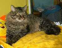 Этот комочек оказался очень понятливым, самостоятельным, независимым и с характером, который проявился с первых же дней. Это первый наш кот. Как его приучать, что с ним делать мы, как новички, представляли смутно. Главное -он знал, что с нами делать. И началось наше воспитание. Мы быстро усвоили, что если с ним не посчитаться, то можно получить «серьезный подарок» в тапочек или ботинок. При этом очень чистоплотен, уверен в себе, не склонен к проказам, обладает уравновешенным характером, охраняет нашу квартиру, а также и машину (если мы куда-нибудь едем) не хуже собаки, при необходимости –рычит. Любит гулять на нашем балконе и балконе соседей, оттуда он приносит нам еду. Из этого мы сделали вывод, что он неплохой охотник. Если что прокормит себя и нас. Он не очень разговорчивый, не ручной. Приходит ласкаться только когда захочет он. Любит играть с конфетой – ты ему бросаешь, а он тебе ее приносит, кладет к ногам и ждет, когда ее кинут. Любопытен, как кошка. Ничего в доме без него не происходит. В семь месяцев мы его кастрировали. Через год мы пошли на выставку, где нам определили породу и сказали, что наш Боня выставочный кот. И с тех пор мы не знаем покоя. Были мы домоседами, а с ним стали «ездовыми кошатниками».