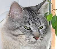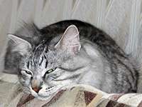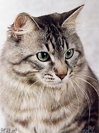 Знакомство с кошачьим миром у меня началось с приобретения беспородного котика за чисто символическую цену. Как видно он мало видел ласки от людей и поэтому у него было много проблем психологического характера. В связи с этим кот нещадно обдирал мебель, пачкал по всем углам, ну, в общем, делал все что мог. Естественно, отношения наши не складывались, ко всему прочему было очень много проблем со здоровьем. На шестом году жизни кот умер от мочекаменной болезни. Я даже и представить себе не могла, насколько к нему привязалась. Хоть и не были наши отношения идеальными, но мой кот научил меня внимательней относиться к живому существу, проявлять больше терпения и понимания. Было странно возвращаться домой в пустую квартиру, никто не требовал твоей заботы, никто в тебе не нуждался. И через три недели на птичьем рынке мы купили смешного дымчатого котенка, но и он долго с нами не задержался, умер через неделю от панлейкопении. Трагедии не было предела. Все дела пошли на пере косяк, пошатнулось здоровье. Мы с мужем не выдержали и через месяц после этого стали собирать всю информацию о различных породах. Ведь каждая имеет свой характер. И чтобы взаимоотношения человека и животного были стабильными необходимо совпадение характеров. Остановились мы на двух породах: сибирская и русская голубая. Эти породы меня покорили, но нужно было что-то выбирать… Обзвонили все московские клубы, посетили не одну выставку и все равно ничего не могли решить. Мне хотелось что-то среднее арифметическое: чтобы элегантность кошки совпадала с характером, адаптированным для человека, но самое главное, чтобы кот не метил. Тут мы и наткнулись на статью «Курильское чудо». А когда я увидела Васю из Александр-Фред, то и совсем была сражена. Это был кот моей мечты. Бесконечно-долгие ожидания и приготовления и вот «Курильское чудо» - сын Васи в моей квартире. Чудо сразу расставило все точки над «и». Оно требовательно попросилось в туалет, а потом с жадностью набросилось на еду.