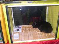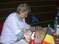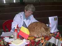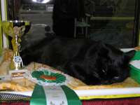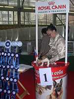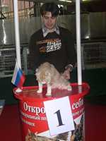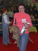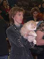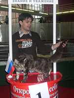 Они просто покорили всех своими сногсшибательными костюмами очаровательной ведьмочки и Аман Паши. Животные выставлялись по трем системам: WCF, МФА и CFF. Клетки располагались в секторах, соответствующих каждой выставочной системе. Проходы между рядами со стороны посетителей и со стороны мест для владельцев были достаточно широки. Посетителей было не очень много. Хочется отметить хорошую организацию выставки, особенно четкую работу стюардов, которые приглашали к судейскому столу своевременно – никакого томительного ожидания, никакой путаницы. Конечно на этой выставке были представители и клуба Кимберлит. Курильский бобтейл Веньямин (KBS n 23 03 открыт. класс Михайлов А.В.) благополучно закрыл титул чемпиона породы. Молодцы. Поздравляем! Питомник Крошка Флак представляли: