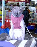 23-24 апреля - выставка «Содружество»Любая выставка как в Москве, так и в других городах и странах не обходится без представителей Российской аборигенной породы: Курильский бобтейл. Не стала исключением и ежегодная международная выставка кошек Содружество, проходившая 23-24 апреля в центре Москвы на стадионе Братьев Знаменских. Выставка расположилась на арене Культурно-спортивного центра. Зал был разделен на несколько частей: в основной выставлялись животные, в другой расположились стенды различных фирм по продаже кормов и аксессуаров. На специально подготовленном месте с открытия до закрытия выставки проходили различные конкурсы и розыгрыши призов для гостей и участников. Особенно поразил конкурс на лучший костюм, на котором стали победителями