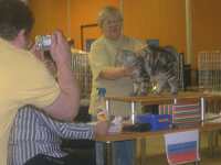 7-8 мая - выставка клуба «Империал»В разгар майских праздников, 7-8 мая, состоялась выставка по системе TICA в уютном выставочном центре «Инфо-пространство». Эта была первая выставка клуба «Империал», которую они провели с достоинством. Не было ни очередей, ни толкотни в проходах. Все спокойно, даже кофе и чай можно было попить в любое время, бесплатно и в любом количестве. Судьи постоянно комментировали свои оценки, и благодаря организаторам, поставившим стулья рядом с рингами, было всем удобно смотреть и слушать судейство. Безумно понравилось наблюдать за судейством Massimo Picardello и Kurt Vlash, которое было не просто интересным и содержательным, да еще очень артистичным, эмоциональным, настоящее шоу. Курбобовых короткохвостиков собралось не очень много, всего 11 представителей, выставлявшихся вне чемпионата. На выставке все было тихо и размеренно, и поэтому все Курилы вели себя идеально. Очень порадовало внимание судей к Курильским бобтейлам. Судьи не просто знакомились с представителями породы, но постоянно задавали вопросы, комментировали, что они увидели и давали советы по продвижению породы по системе TICA. Как писала Влада:«Мне неописуемо жалко, что наибольший интерес и наименьший результат от выставки был у курильских бобтейлов. Свою главную миссию они выполнили - судьям понравились». Что же имелось ввиду, а то больше представителей породы зарегестрируются по системе TICA, тем быстрее для нас откроют чемпионат. Порадовало, что почти все курилы из нашего клуба попадали в 10 лучших. Молодцы!! Результаты рингов: