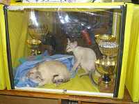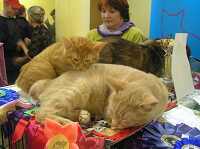 22 октября - выставка в РыбинскеНаш сибирский кот Барон Сибарис (Тошка) стал Бест юниором выставки проходившей в г. Рыбинске 22 октября 2005 г.! Боня, на этой выставке не выставлялся, он был группой поддержки. А также поздравляем сибиряка Чемпиона Мира (премиора) Лель Сант-Андре (дедушку нашего Барона Сибариса) и его хозяйку Наталью Сертакову с Бест премиором! |