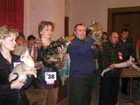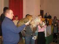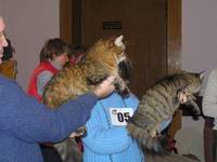 15 января 2006 года - выставка в городе Подольске28 декабря 2005г. нашему сибирскому коту Тошке (Барону) исполнилось 10 месяцев. И у него началась взрослая жизнь. Поэтому мы начали серьезно заниматься его выставочной карьерой. На выставке в Подольске 15 января 2006г. он выставлялся на первый титул - САС. И начало оказалось очень удачным! Победив в своей группе, он вышел в общий Бест и стал 4-м!!! |