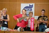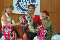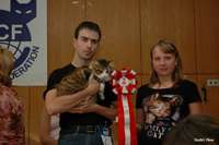 Выставка КЛК «Москва»9-10 сентября состоялась международная выставка кошек, проведенная Московским городским клубом любителей кошек «Москва». Клуб «Кимберлит» был представлен 6 животными: красавицей Арысь из дома Семаргла (владелец – А.Оганесян), Ямахой из Хабаровска (вл. А. Полякова) и дружной командой питомника Sunny Island, в которую вошли кошка Шейла, аборигенка с Курильских островов (владелица – К.Хисамутдинова), Бархан Таинственный Остров (владелица – К.Дмитриева), Бальтазар Таинственный Остров (владелица – О.Максимова) и его сын, Arsenal of Sunny Island (владелица – Е.Кислова), выставлявшийся в классе котят. Все животные получили высокую оценку судей: 4 представителя питомника Sunny Island и Ямаха были номинированы на BIS, а великолепный Бархан Таинственный Остров выиграл Best of Best и был признан лучшим животным выставки. Фотографии предоставлены KaDiS