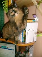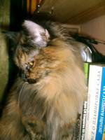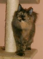 Бусинка Мяу БемольЕсть такое слово, - чем-то комплимент, чем-то обзывательство, - "пацанка". Это, например,когда девочка, вместо того, чтобы, как ей положено по стереотипам, играть в куклы или вышивать, гоняет на стадионе мяч или лазает по деревьям. Может быть, на характер Бусинки отложило отпечаток ее имя (так и представляется что-то маленькое, яркое и так и норовящее закатиться куда-нибудь под диван), но определение, с которого все началось, более чем подходит этой кошке. Ну как еще назвать чудо черепахового окраса с хитрой физиономией и тихим голосом, способное лучше всякого будильника поднять тебя рано утром, устраивая гонки по пересеченной тобой местности (читай: кровати), проявляя чудеса альпинизма, забраться под потолок, или внезапно возомнив себя птицей, свить гнездо где-нибудь на антресолях и изредка подавать из него голос. Причем голос этот будет и звучать соответственно - нечто похожее на далекое журавлиное курлыкание. Зато, когда игры закончены, нет зверя спокойнее и покладистей, чем Бусинка. Свернувшись рядом, она с интересом наблюдает за твоими действиями, или кокетливо закрепляет эффект, произведенный на Бограда, демонстрируя, какой мягкой и покладистой она может быть. И глядя на эту идиллистическую картину, не сомневаешься, что именно такой она и будет, когда в их жизни появятся Бусы и Бусинки, сделав нашу жизнь еще ярче и радостнее.