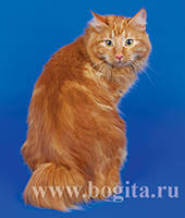 Bogita All StarsРыжая красавица с чуть раскосыми глазами и независимым характером – это наша Богита, девочка-принцесса. Еще в совсем юном возрасте Богита завоевывала прекрасные оценки, а, продолжив свою выставочную карьеру, получила первый CACIB. Сейчас рыжая аристократка – мать четырех прелестных котят, отец которых - Лель Крошка Флак. Больше о Богите можно прочитать на ее персональном сайте www.bogita.ru Выведена из разведения.