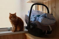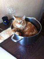 Персональная страница или рассказы кота о своей жизни: http://garsik.livejournal.com Мя! Именно так умеет здороваться наш кот. Он, как вы уже вероятно поняли, очень вежливый и воспитанный. А еще он очень общительный. Когда мы возвращаемся домой, обязательно выбегает встречать: кто пришел, чего принес? Убедившись, что это свои, падает на бок, перекатывается через спину и внимательно смотрит всем своим видом предлагая погладить его не откладывая в долгий ящик – здесь и сейчас! Если же видит, что пришли гости, садится невдалеке и внимательно наблюдает что эти новые двуногие будут делать дальше. Пристальное сопровождение им обеспечено! Как уже было сказано, Гарсик - очень воспитанный кот: если за окном утро выходного дня и тонкие намеки на то что кота надо погладить (приходит и урча плюхается рядом) не находят отклика в душе спящих, он без обид удалится в другую комнату. Кстати, и на буднях он всегда приходит только на писк будильника помогая проснуться не от мысли о работе, а от почесывания кота. Что, согласитесь, крайне положительно влияет на психику! :) Гарсик – очень социализированное существо. Когда приходят гости, он непременно приходит в комнату посидеть вместе со всеми. Занимает самый удобный стул, располагается с комфортом и внимательно на всех жмурится. Гости умиляются и бросаются тискать, чем кот беззастенчиво и полноправно пользуется. Комплименты выслушивает скромно, но с достоинством. В результате, по последним наблюдениям, Гарсик выслушивает гораздо больше фраз «а теперь вы к нам!», чем даже коренные обитатели жилплощади. Некоторые просят кота познакомить в будушем с его детями в надежде, что яблоки и в этот раз от яблони далеко не упадут. На время отпуска мы несколько раз оставляли Гарсю у друзей. (как вы понимаете, проблем с поиском кого бы осчастливить – не было. Даже наоборот :)) Оба раза он быстро осваивался в новой обстановке: ни малейших проблем с лотком, едой (своей или тех кошачьих, кто там жил), людьми, детьми, обстановкой и дотошнейшим обследованием нового пространства не возникало. Бывало, что принимающая сторона шипела на новосела, но… Гарся искренне не понимал что это и зачем и после взгляда на людей формата «это было что?» продолжал ненадолго прерванное занятие. Кстати, одна пара пожив с Гарсей 3 недели новогодних каникул, не смогла после адаптироваться обратно к безкотячей жизни, и теперь у них есть свой курбобик :) К нашему новорожденному малышу Гарсик относится с особым трепетом, очень деликатно. В первые же дни после возвращения из роддома, когда мама устала и заснула в одной комнате, а малыш расплакался в другой, Гарся — что бы вы думали? — прибежал к маме и стал тыкаться мордой ей в руку, имитируя мряканием плачь ребенка. Мол, хватит спать, тебя зовут! А когда к малышу приближается врач, медсестра, бабушка или кто еще, Гарфилд приходит и ложится рядом с ребенком, внимательно следя за всем, что происходит. Бабушек в последнее время он уже допустил до «безнадзорной» работы с мелким, но по началу их этот пригляд кота изрядно озадачивал. Начиная с 5 месяцев мы регулярно выставлялись в Москве. На отдельной полке стоят уже награды в рингах среди котят и юниоров, номинации на Best и даже первое место на ринге взрослых животных (из 33). На выставках кот вел себя очень достойно: с позволительно-благожелательным лицом принимал как отличные о