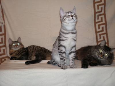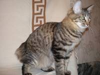 Тамара у нас в доме появилась случайно. Моя сестра, как-то рассказала, что у них в доме, в соседнем подъезде, у знакомых живут странные кот и кошка. Странность их заключалась в том, что у них нет хвоста. Нет, не то чтобы совсем нет, он есть, но очень маленький и очень причудливо закручен, как у поросёнка. Поэтому создается впечатление, что у кошки заячий хвостик-пумпон. У нас в доме кошки были с детства, но таких я никогда не встречал, поэтому мне очень захотелось иметь такое чудо у себя дома. И вот в мае это чудо появилось у нас. Тамара (так мы назвали котенка) сразу всем очень понравилась. Даже моя жена, которая всегда к кошкам относилась прохладно, не осталась равнодушна к этому маленькому чуду. Особенно Тамара пришлась по душе моему младшему сыну Никите. Он постоянно играл с ней и Тамарке тоже нравилось с ним играть. Особенно ей нравилось устраивать на него охоту. Тамарка где-нибудь пряталась, а когда Никита проходил мимо этого места она нападала на него из засады. Сын с криками убегал от неё, а она весело гналась за ним. Летом мы поехали на дачу и взяли Тамарку с собой. Я, честно говоря, боялся, сто она может убежать, но мои опасения были напрасны. Тамарка сначала обследовала весь домик, потом участок и как хозяйка улеглась на крыше, оглядывая с верху свои владения. С местной кошкой, Муськой, отношения складывались осень тяжело. Муська никак не хотела согласиться, что теперь здесь появилась новая жительница, но через какоето время смирилась, подружилась с Тамаркой и они даже спали вместе. С территории участка Тамарка ни куда не уходила, и по всюду сопровождала жену, бегала за ней как собачонка. Жена в сад и Тамарка за ней, жена в огород копать, а Тамарка сядет рядом и посматривает за ней. На даче у Тамарки по настоящему проявился талант охотника. Она часто радовала мою маму подарками, то из сарая принесет ей мышку, то с огорода лягушку или ящерицу. Так Тамарка прожила у нас 1,5 года, радуя нас присутствием. Однажды на работе, в разговоре я узнал, что у нашей сотруднице, Марины, есть кот, с точно таким же хвостом как у нашей Тамарки. Я рассказал ей про свою кошку, принес фотографии. Марина мне рассказала, что это кошка нашей аборигенной породы Курильский бобтейл и предложила показать Тамарку председателю клуба «Кимберлит», в котором она состоит, Александру Оганесяну. И вот мы едем с нашей кошкой на смотрины. Я очень волновался, вдруг моя кошка не понравится специалистам. Но мои опасения были напрасны, Тамарка понравилась, а я познакомился с замечательными людьми настоящими фанатами породы Курильский бобтейл. От них я много узнал интересного и полезного для себя. На предложение Александра серьёзно заняться своей любимицей и вступить в клуб я с удовольствием согласился. С этого момента началась наша с Тамаркой клубная жизнь. Поездки на выставки, где я познакомился с другими членами нашего клуба. Коллектив оказался очень дружным веселым и компанейским. За небольшой срок, что я состою в клубе (месяцев 10) мы получили чемпиона по WCF и интерчемпиона по WCA. Зарегистрировали питомник «Мистер боб». Недавно вернулись от своего жениха Незнайки Крошка Флак (владелец Марина Крот) и теперь ждем первое потомство. ... Заа последних пол года произошло много интересного с моими питомцами. Во первых- 19 августа наша Тамара наконец то стала мамой, у неё родилось четверо замеч
