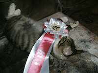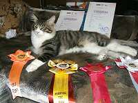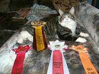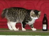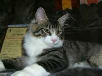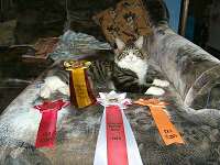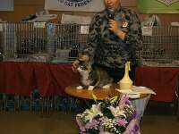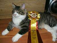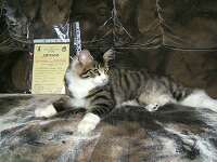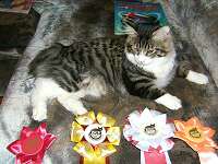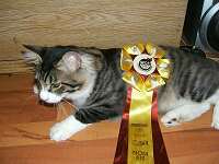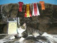 Я поэт, зовусь Незнайка,от меня вам балалайка.Все помнят строки Н .Носова? Вот и у нас в клубе подростает Незнайка.Только он не коротышка,а кот породы курильский бобтейл. Родился, крестился, как понимаете в п-ке Крошка Флак 24.12.2004., да так в питомнике и остался. Папка его - Егорунька Крошка Флак, мама Заряна Крошка Флак, а в дедах ходят сами мировые чемпионы Зорро Форбарра и Антей Алмаз, который ещё и WCF-MASTER. Живёт Незнайка, по-домашнему Макс в семье Кротт Марины Викторовны.Недавно он блистал на Беби-салоне в Москве.Из кимберлитовских юниоров он один представлял клуб на Бест ин шоу. 12 11 05 Незнайка начинает титульную карьеру по системе WCF. Владельцы курильских кошечек возьмите парня на заметку!