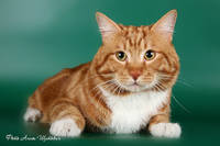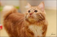 Минотавр (в семье – просто Тавр), единственный кот в помете, обладатель чудно закрученного хвостика и роскошного белоснежного жабо, отличается четкостью красного мрамора в окрасе. Кроме того, основные черты его характера – спокойствие и любовь к хозяйке.